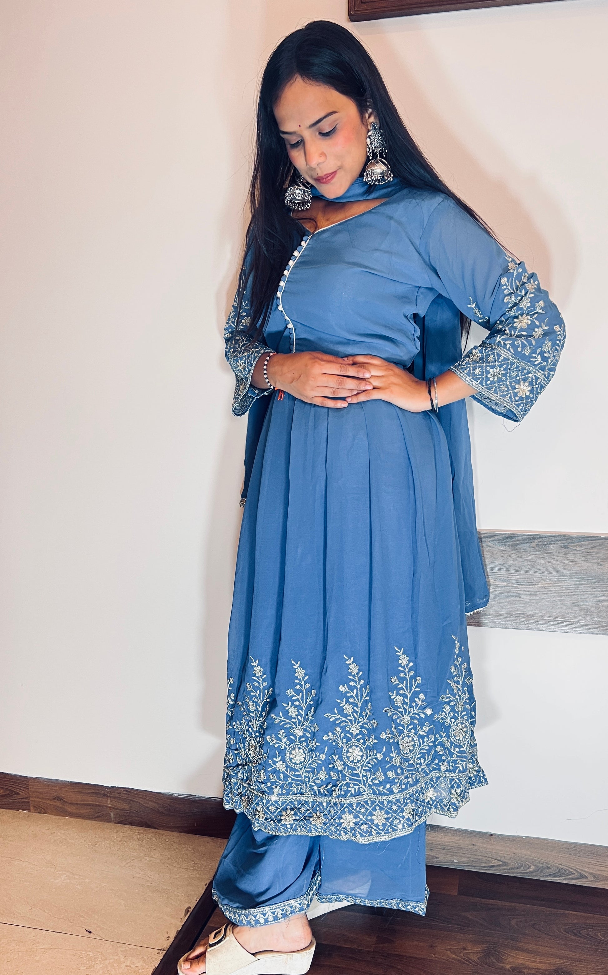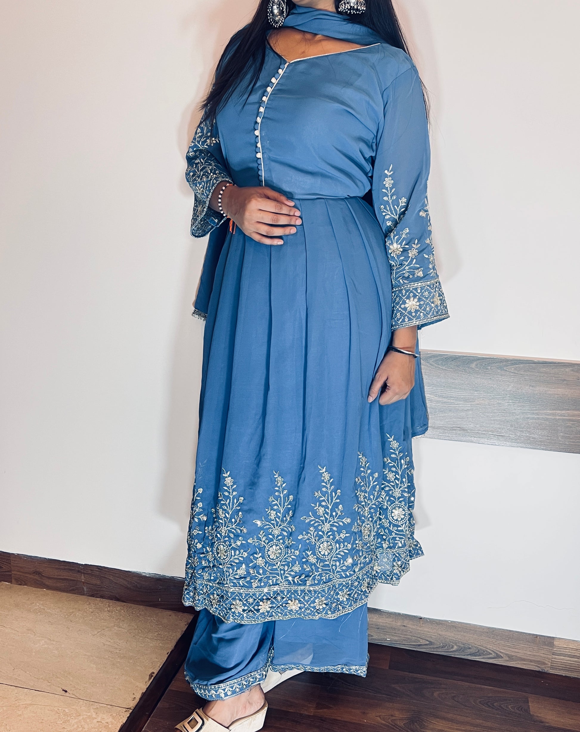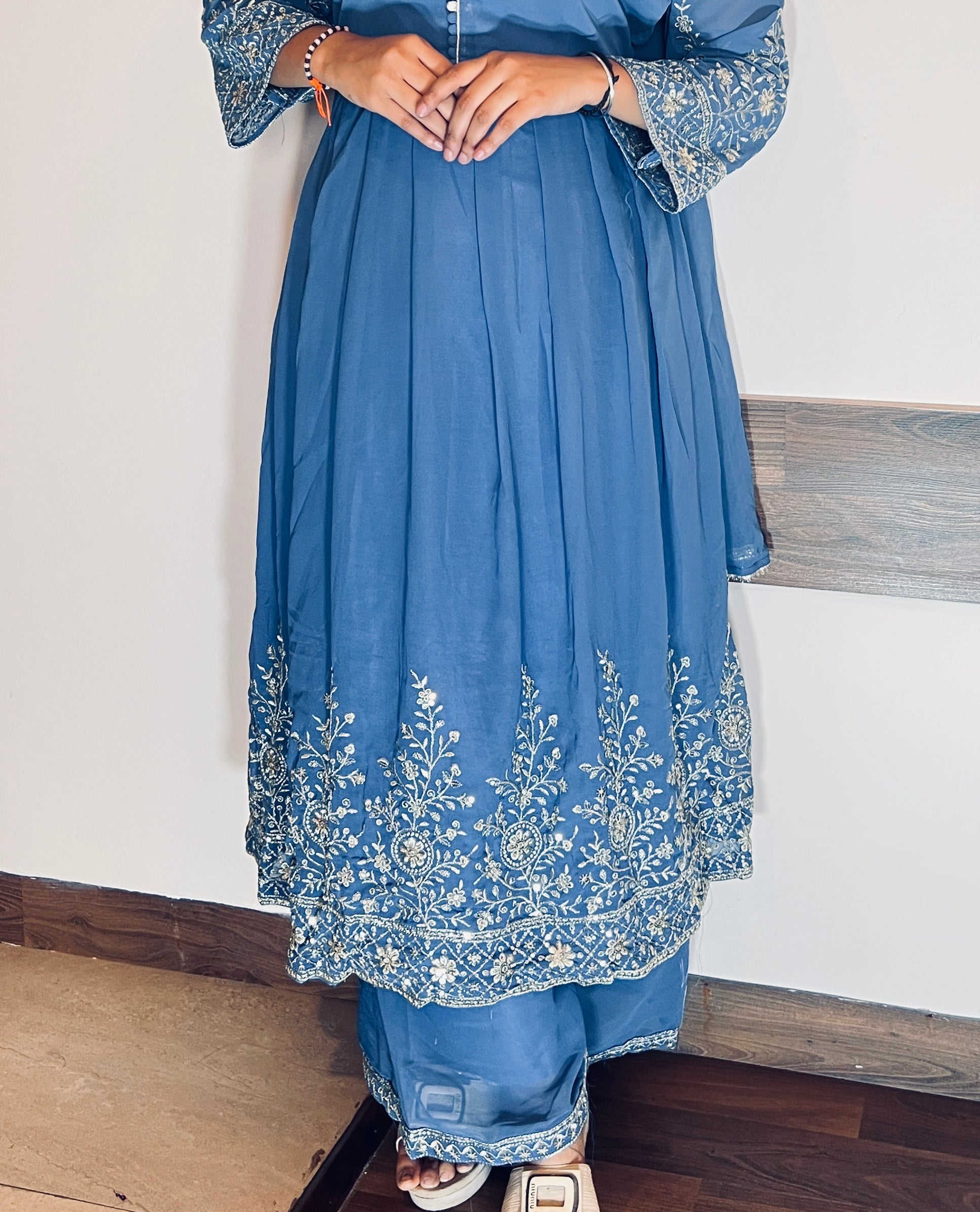 Turn every head with our Party Wear Georgette Frock Suit, designed to bring out your inner diva.